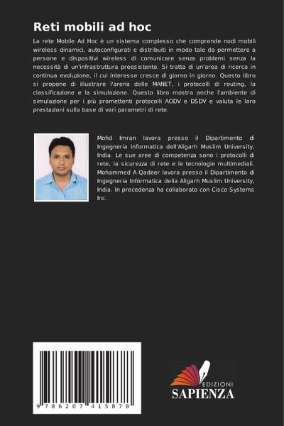 La rete Mobile Ad Hoc è un sistema complesso che comprende nodi mobili wireless dinamici, autoconfigurati e distribuiti in modo tale da permettere a persone e dispositivi wireless di comunicare senza problemi senza la necessità di un'infrastruttura preesistente. Si tratta di un'area di ricerca in continua evoluzione, il cui interesse cresce di giorno in giorno. Questo libro si propone di illustrare l'arena delle MANET, i protocolli di routing, la classificazione e la simulazione. Questo libro mostra anche l'ambiente di simulazione per i più promettenti protocolli AODV e DSDV e valuta le loro prestazioni sulla base di vari parametri di rete.
