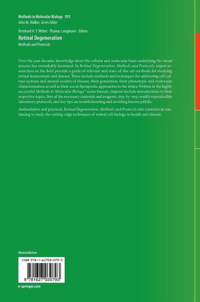 "This step-by-step guide to studying retinal cell biology in health and disease covers a large spectrum of techniques and animal model species. ... Certainly, this book is for basic scientists. It is a great tool for those based in laboratories, and researchers at all levels can benefit from the basics to key tips on troubleshooting cutting-edge techniques and avoiding pitfalls. ... This book is great in simplifying new cutting-edge techniques in studying retinal degeneration." (Ayham Skaf, Doody's Book Reviews, May, 2013)
