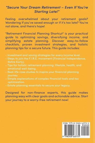 Achieve a comfortable retirement, even if you're starting late! The " Retirement Financial Planning Shortcut" provides straightforward strategies to boost savings, diversify income, and simplify estate planning. This insightful guide features: - A simple retirement checklist for all life stages. - Proven strategies to maximize income. - Key steps for aggressive saving, especially for F.I.R.E. - Holistic planning addressing emotional well-being. - Real-life examples to inspire you. - Easy financial tool explanations and tax optimization guidance. - Expert advice on investment risks and estate planning insights. Designed for non-finance experts, it emphasizes that it's never too late to secure your future. With clear guidance and exclusive tools, retirement planning becomes achievable. Start your journey to a stable retirement and take control of your financial future today!