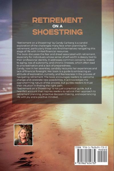 "Retirement on a Shoestring" by Candy Carlberg is a candid exploration of the challenges many face when planning for retirement, particularly those who find themselves navigating this stage of life with limited financial resources. The book discusses the fear and dread associated with retirement, especially for individuals whose sense of self-worth is deeply tied to their professional identity. It addresses common concerns related to aging, loss of autonomy, and chronic illnesses, which often lead to procrastination and a lack of preparedness. Candy, now in her seventies, candidly recounts her experiences and lack of financial foresight. Her book is a guide to embracing an attitude of exploration, curiosity, and fearlessness in the process of navigating retirement. The book encourages readers to welcome change and celebrate new possibilities. It acknowledges the overwhelming nature of the process, but guides readers to trust their intuition in finding the right path. "Retirement on a Shoestring" is not just a practical guide, but a heartfelt account that inspires readers to rethink their approach to retirement planning, proactive decision-making, and experiencing life with joy and a positive mindset.
