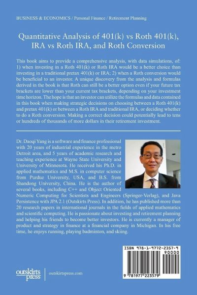 This book aims to provide a comprehensive analysis, with data simulations, of: 1) when investing in a Roth 401(k) or Roth IRA would be a better choice than investing in a traditional pretax 401(k) or IRA; 2) when a Roth conversion would be beneficial to an investor. A unique discovery from the analysis and formulas derived in the book is that Roth can still be a better option even if your future tax brackets are lower than your current tax brackets, depending on your investment time horizon. The hope is that an investor can utilize the formulas and data contained in this book when making strategic decisions on choosing between a Roth 401(k) and pretax 401(k) or between a Roth IRA and traditional IRA, or deciding whether to do a Roth conversion. Making a correct decision could potentially lead to tens or hundreds of thousands of more dollars in their retirement investment.