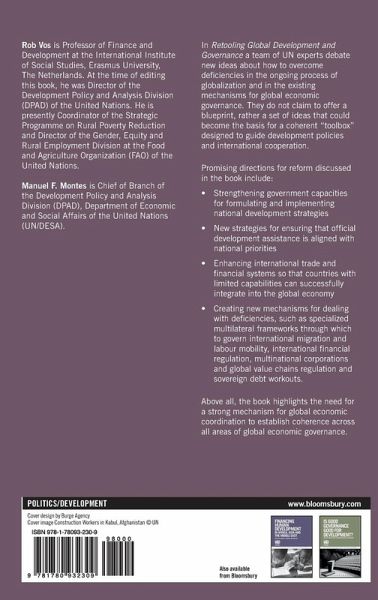 This book is available as open access through the Bloomsbury Open Access programme and is available on bloomsburycollections.com. In Retooling Global Development and Governance a team of UN experts debate new ideas about how to overcome deficiencies in the ongoing process of globalization and in the existing mechanisms for global economic governance. They do not claim to offer a blueprint, rather a set of ideas that could become the basis for a coherent "toolbox" designed to guide development policies and international cooperation. Promising directions for reform discussed in the book include: - Strengthening government capacities for formulating and implementing national development strategies - New strategies for ensuring that official development assistance is aligned with national priorities - Enhancing international trade and financial systems so that countries with limited capabilities can successfully integrate into the global economy - Creating new mechanisms for dealing with deficiencies, such as specialized multilateral frameworks through which to govern international migration and labour mobility, international financial regulation, multinational corporations and global value chains regulation and sovereign debt workouts. Above all, the book highlights the need for a strong mechanism for global economic coordination to establish coherence across all areas of global economic governance.