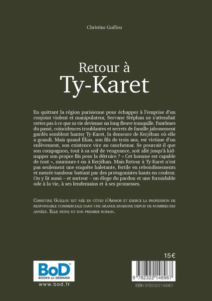 En quittant la région parisienne pour échapper à l'emprise d'un conjoint violent et manipulateur, Servane Stéphan ne s'attendait certes pas à ce que sa vie devienne un long fleuve tranquille. Fantômes du passé, coïncidences troublantes et secrets de famille jalousement gardés semblent hanter Ty-Karet, la demeure de Kerjéhan où elle a grandi. Mais quand Élias, son fils de trois ans, est victime d'un enlèvement, son existence vire au cauchemar. Se pourrait-il que son compagnon, tout à sa soif de vengeance, soit allé jusqu'à kidnapper son propre fils pour la détruire ? " Cet homme est capable de tout ", murmure-t-on à Kerjéhan. Mais Retour à Ty-Karet n'est pas seulement une enquête haletante, fertile en rebondissements et menée tambour battant par des protagonistes hauts en couleur. On y lit aussi - et surtout - un éloge du pardon et une formidable ode à la vie, à ses lendemains et à ses promesses.