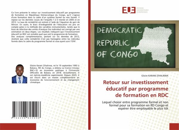 Ce livre présente le retour sur investissement éducatif par programme de formation en République Démocratique du Congo, qu'il s'agisse d'une formation dans le cadre d'un système formel ou non formel. Il repose sur les données issues de l'enquête 1-2-3 menée en 2005 et en 2012. Le taux de rentabilité est estimé à l'aide de l'équation de gain de Mincer. En outre, le biais d'endogénéité de l'éducation est pris en compte grâce à la méthode des variables instrumentales, tandis que le biais de sélection des unités d'analyse (les individus) est corrigé par une estimation en deux étapes. Les résultats indiquent que l'investissement éducatif en RDC est rentable quel que soit le programme de formation.Des analyses complémentaires, portant sur les données de 2012, révèlent que cette rentabilité n'est pas homogène entre les individus formés dans le cadre du programme formel et ceux ayant suivi l'ENF.