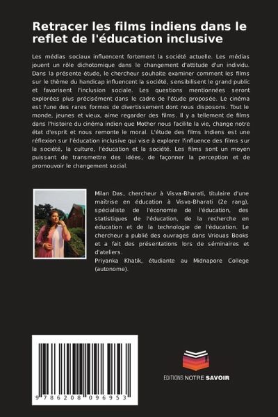 Les médias sociaux influencent fortement la société actuelle. Les médias jouent un rôle dichotomique dans le changement d'attitude d'un individu. Dans la présente étude, le chercheur souhaite examiner comment les films sur le thème du handicap influencent la société, sensibilisent le grand public et favorisent l'inclusion sociale. Les questions mentionnées seront explorées plus précisément dans le cadre de l'étude proposée. Le cinéma est l'une des rares formes de divertissement dont nous disposons. Tout le monde, jeunes et vieux, aime regarder des films. Il y a tellement de films dans l'histoire du cinéma indien que Mother nous facilite la vie, change notre état d'esprit et nous remonte le moral. L'étude des films indiens est une réflexion sur l'éducation inclusive qui vise à explorer l'influence des films sur la société, la culture, l'éducation et la société. Les films sont un moyen puissant de transmettre des idées, de façonner la perception et de promouvoir le changement social.