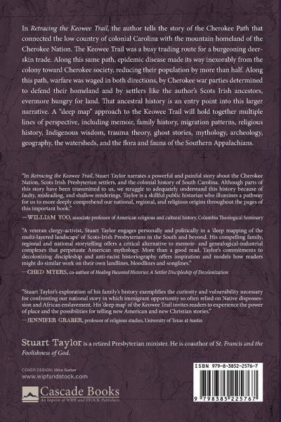 In Retracing the Keowee Trail, the author tells the story of the Cherokee Path that connected the low country of colonial Carolina with the mountain homeland of the Cherokee Nation. The Keowee Trail was a busy trading route for a burgeoning deerskin trade. Along this same path, epidemic disease made its way inexorably from the colony toward Cherokee society, reducing their population by more than half. Along this path, warfare was waged in both directions, by Cherokee war parties determined to defend their homeland and by settlers like the author's Scots Irish ancestors, evermore hungry for land. That ancestral history is an entry point into this larger narrative. A ""deep map"" approach to the Keowee Trail will hold together multiple lines of perspective, including memoir, family history, migration patterns, religious history, Indigenous wisdom, trauma theory, ghost stories, mythology, archeology, geography, the watersheds, and the flora and fauna of the Southern Appalachians.