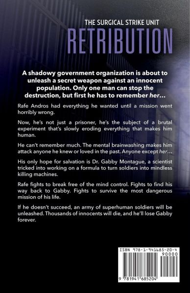 A shadowy government organization is about to unleash a secret weapon against an innocent population. Only one man can stop the destruction, but first he has to remember her... Rafe Andros had everything he wanted until a mission went horribly wrong.¿¿¿ Now, he's not just a prisoner, he's the subject of a brutal experiment that's slowly eroding everything that makes him human. He can't remember much. The mental brainwashing makes him attack anyone he knew or loved in the past. Anyone except her... His only hope for salvation is Dr. Gabby Montague, a scientist tricked into working on a formula to turn soldiers into mindless killing machines. Rafe fights to break free of the mind control. Fights to find his way back to Gabby. Fights to survive the most dangerous mission of his life. If he doesn't succeed, an army of superhuman soldiers will be unleashed. Thousands of innocents will die, and he'll lose Gabby forever. If you like edge-of-your-seat action, government conspiracies, and characters forced to confront the darkness within themselves, then you'll love the third book in Vanessa Kier's action-packed SSU romantic thriller series. ¿Get Retribution today to begin the adventure!