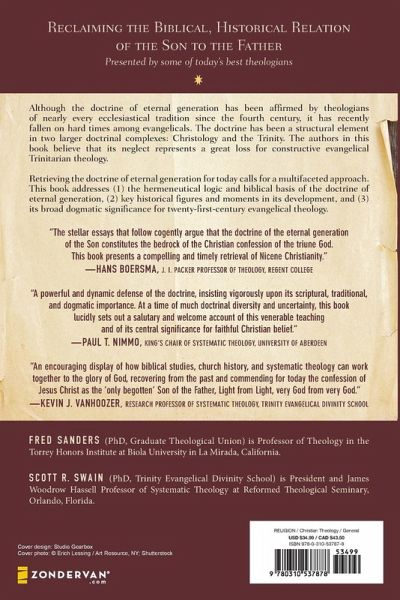 Retrieving Eternal Generation seeks to recover the doctrine of eternal generation biblically and historically, and to demonstrate its theological fruitfulness to contemporary evangelical scholarship.