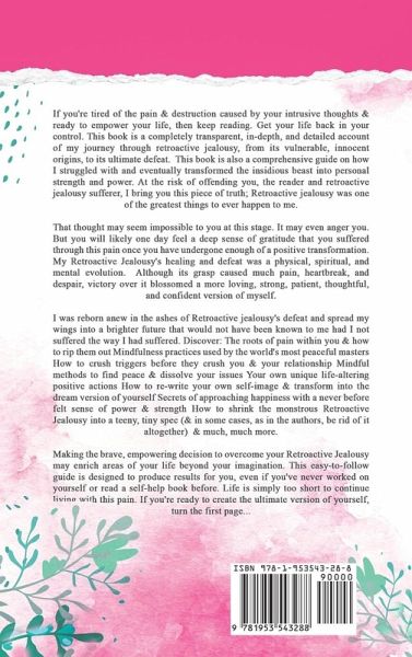 If you're tired of the pain & destruction caused by your intrusive thoughts & are ready to empower your life then keep reading... Get your life back in your control. This book is a completely transparent, in-depth, and detailed account of my journey through retroactive jealousy. From its vulnerable, innocent origins, to its ultimate epic defeat. This book is also a comprehensive guide on how I personally struggled with and eventually transformed the insidious beast into personal strength and power. At the risk of offending you the reader and retroactive jealousy sufferer, I bring you this piece of truth; Retroactive jealousy was one of the greatest things to ever happen to me. That thought may seem impossible to you at this stage. It may even anger you. But you will likely one day feel a deep sense of gratitude that you suffered through this pain once you have undergone enough of a positive transformation. My Retroactive Jealousy's healing and defeat was a physical, spiritual, and mental evolution. Although its grasp caused much pain, heartbreak, and despair, victory over it blossomed a more loving, strong, patient, thoughtful, and confident version of myself. I was reborn anew in the ashes of Retroactive jealousy's defeat and spread my wings into a brighter future that would not have been known to me had I not suffered the way I had suffered. Inside You Will Discover...The roots of pain within you & ways to rip them out (that no one ever told you about) Insider mindfulness secrets used by the worlds most peaceful masters These unique strategies to crush triggers before they crush you & your relationship Simple to apply methods to find peace & dissolve your turmoil Your own unique life-altering positive actions How to easily re-write your own self-image & transform into the dream version of yourself Secrets to approach happiness with a never before felt sense of power & strength How to shrink the monstrous Retroactive Jealousy into a teeny, tiny spec (& in some cases, as in the authors, be rid of it altogether!) And Much Much More... Making the brave, empowering decision to overcome your Retroactive Jealousy will enrich your life beyond your current comprehension! This easy to follow guide is designed to produce results for you from the comfort of your own home, even if you've never worked on yourself or read a self-help book before. No shelling out thousands of dollars on a therapist, no hard traumatic work, & no expensive life coach needed. Life is simply too short to continue living with this pain. So if you're ready to create the ultimate version of yourself then click "add to cart"