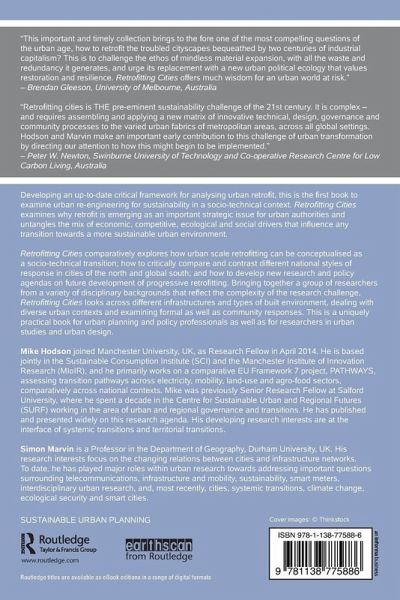 "Retrofitting cities is THE pre-eminent sustainability challenge of the 21st century. It is complex - and requires assembling and applying a new matrix of innovative technical, design, governance and community processes to the varied urban fabrics of metropolitan areas, across all global settings. Hodson and Marvin make an important early contribution to this challenge of urban transformation by directing our attention to how this might begin to be implemented." -Peter W. Newton, Swinburne University of Technology and Co-operative Research Centre for Low Carbon Living