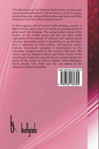 This 5th volume in the Boyhood Works Series contains a thriller Novella and a collection of short stories, Retrospective Vision: Cultural Interactions, provides a counterpoint to the adrenalin- charged world of this volume's first part. The earthy, natural, magical realism and oral tradition reminisant of the novels of Chinua Achebe.