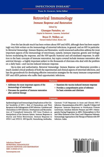 Although there have been many books on HIV and AIDS, surprisingly little has been published that focuses on the immunology of retroviral infections in general, and HIV in particular. Retroviral Immunology: Immune Response and Restoration is the first book of its kind to address the most important aspects of the immunology of retroviruses, including not only the virus-specific immune responses, but also genetic and virologic factors modulating these responses. The book also deals directly with the emerging concept of immune restora tion in retroviral infections, a particularly important subject to the thousands of clinicians who deal with this problem on a daily basis. With the advent of highly effective antiviral drug regimens to slow down the replication of HIV and the progression of AIDS, new challenges and opportunities are arising. Restoration of general immune function has brought with it not only complica tions of immune restoration-mediated disease, but also the realistic hope for meaningful restoration of the ability to control HIV replication with the immune system. Leading scientists in the field have summarized the most current informa tion regarding experimental and clinical aspects of retroviral infections. Retroviral Immunology: Immune Response and Restoration should prove an impor tant point of reference for basic scientists and clinicians in this area of research. We are indebted to all of our authors for their excellent contributions.