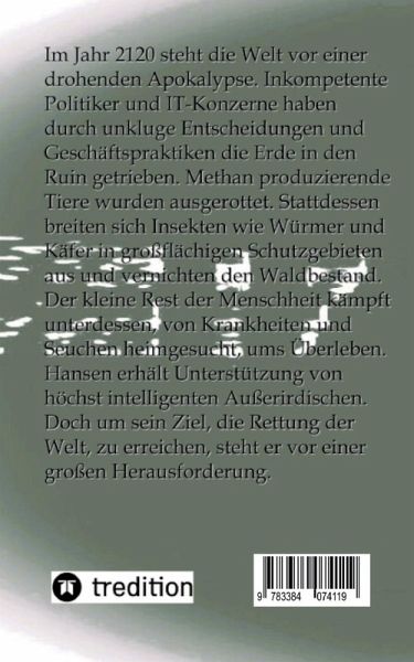Die Menschheit schafft sich ab und keiner bekommt das mit. Diese schockierende Aussage stammt von dem Astrophysiker James Hansen, der die Öffentlichkeit aufrütteln möchte. Trotz des Wohlstands, den die meisten Menschen auf der Erde im Jahr 2120 genießen, sieht sich die Welt aufgrund schwerwiegender Systemschwierigkeiten einer drohenden Apokalypse gegenüber. Inkompetente Politiker und IT-Konzerne haben durch falsche Entscheidungen und fehlerhafte Geschäftspraktiken die Erde in den Ruin getrieben. Es gibt keine Tiere mehr, die Methan produzieren. Es gibt jedoch großflächig geschützte Bereiche, die für den Menschen nicht zugänglich sind. Dort leben verschiedene Insektenarten wie Würmer und Käfer. Sie vernichten Bäume und ganze Wälder, tragen aber zur Erweiterung des menschlichen Speiseplans bei, indem sie die im Labor hergestellten Nahrungsmittel ergänzen. Der kleine Rest der Menschheit ist infolge Mangelernährung von Krankheiten und Epidemien bedroht und kämpft ums Überleben. Hansen will etwas dagegen unternehmen. Auf der Erde erfährt er nur geringe Unterstützung, Hilfe sucht er deshalb anderswo. Ein Raumschiff vom Planeten Kepler 22r im Sternbild Centaurus ist genau das, was er jetzt braucht. Es steuert die Erde in Richtung seiner Forschungsstation auf der Insel Santa Lussia an. Hansen nimmt Kontakt mit einer Außerirdischen auf. Dank ihrer langjährigen Beobachtungen der Erde besitzt sie umfangreiche Kenntnisse über Geographie, Klima, Sprache und Entwicklungsstand. Ihr Interesse gilt der Umsiedlung ihres Volkes auf die Erde. Rasch erkennt er, dass die eingetroffenen Außerirdischen hochintelligente Wesen sind und ihre Anatomie auf ihrem Planeten ähnlich der des Menschen auf der Erde verlaufen sein muss. Er ist fasziniert von der außerirdischen Frau, die sich, nachdem sie ihren Schutzanzug abgelegt hat, als außergewöhnlich schön und attraktiv entpuppt. Während der kurzen Unterhaltung kommt es zu einer von ihr initiierten intimen Beziehung. Die lang ersehnte professionelle Unterstützung ist nun in greifbare Nähe gerückt. Die Aufnahme von Außerirdischen sorgt in der Erdbevölkerung für Kontroversen. Es werden Erinnerungen an das 21. Jahrhundert wach, als Konflikte zwischen den stark unterschiedlichen Kulturen auftraten, die zusammenleben mussten.Die Mächtigen der Finanz- und Wirtschaftswelt sehen sogar ihr System in Gefahr. Ein kleiner Staat wittert dagegen die Chance, mit Hilfe dieser hochentwickelten außerirdischen Intelligenz seine Misswirtschaft zu überwinden. Doch er treibt ein falsches Spiel, das den Weltfrieden akut gefährdet.Hansens Beziehung zu der Außerirdischen ist von unschätzbarem Wert. Er erhält Einblick in eine geniale Robotertechnologie. Mit diesem Trumpf in der Hand kämpft er nicht nur um die Rettung der Welt. Es geht auch um eine ungewöhnliche Familienzusammenführung.
