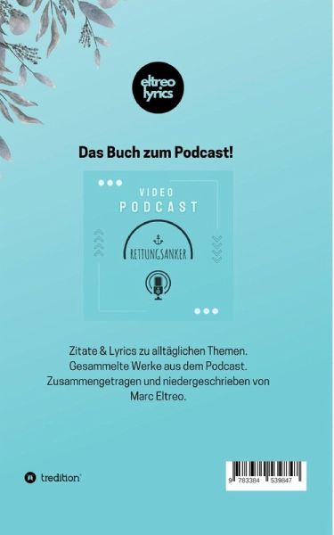 Tiefgreifende Geschichten und Texte, motivierende und inspirierende Zitate, themenübergreifende Podcasts. Marc Eltreo ist Autor und Podcaster. Durch seine Art des Schreibens hat er sich inzwischen in der deutschen Landschaft der Lyriker festgesetzt. Durch seine Überzeugung, anderen Menschen neue Sichtweisen, mehr Motivation und Zuspruch zu vermitteln, geht er immer wieder neue Wege und lässt keine Möglichkeit offen, sein Ziel zu erreichen: Menschen glücklich zu machen. Emotionen, Mut, Stärke, Selbstliebe und begleitende Worte durch eine schwere Phase, sind seine Spezialität. Mit seiner Marke "Eltreo Lyrics" beschert er seinen Lesern regelmäßig neue Inhalte, die er auf vielen sozialen Netzwerken verbreitet. Ebenso sieht und hört man ihn wöchentlich in seinen "Rettungsanker" Podcasts auf YouTube und Spotify.
