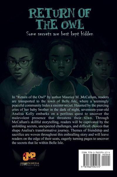 In "Return of the Owl" by author Maurice M. McCallum, readers are transported to the town of Belle Isle, where a seemingly peaceful community hides a sinister secret. Haunted by the piercing cries of her baby brother in the dark of night, seventeen-year-old Analisa Kelly embarks on a perilous quest to uncover the malevolent presence that threatens their town. Through McCallum's skillful storytelling, readers will be captivated by the unfolding secrets, unexpected challenges, and difficult choices that shape Analisa's transformative journey. Themes of friendship and sacrifice are woven throughout this enthralling story and will leave readers on the edge of their seats, eagerly turning pages to uncover the secrets that lie within Belle Isle.