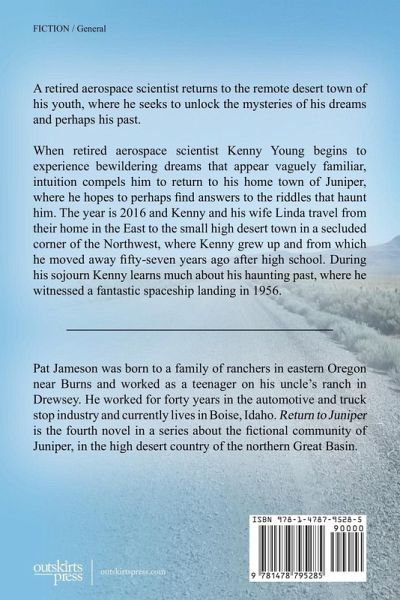 Kenny Young has been retired as an aerospace scientist for ten years. Since then he has been haunted by mysterious dreams that resemble scenes from a spacecraft, with characters some of whom Kenny has realized are aliens. Kenny suspects the aliens in his dreams are connected to the flying saucer he witnessed as a boy, in 1956, and a young man in 1963, when slight, big-headed, cloudy-personas stared back at him beneath their hovering, saucer-like spacecraft. Kenny believes the mysterious images in his dreams stem from these two events that occurred decades ago. He and his wife Linda travel cross country to the high desert of the northern Great Basin to find out. In Juniper, long-time citizen Virl Saeger experiences the same thing as Young, although his nightmares began years ago, in the early 1960s. Saeger suspects his dreams are connected to the same 1956 alien spacecraft landing witnessed by both him and Young. His quest to interpret his mysterious dreams parallels that of Kenny Young, only decades apart. The two men's quests take the reader between the 1960s of Virl's time, to Kenny Young's present day Juniper. The dual-era aspect underlines the significant differences between the conditions and citizens of small town America in the 1950s and '60s versus life in the same small town today. Significant in the story is a small group of Juniper residents with peculiar mental and physical traits that make them unique. Called 'Amerans,' these people settled near Juniper in the 1870s, led by the Jame family, still ranching and raising cattle there all these years, and the Sol family. Kenny Young's boyhood schoolmate, Dred Sol, now working for an international consulting service, meets Kenny Young in 2016 Juniper to help him solve the mysteries of his past and his dreams. As Young and Saeger struggle to interpret their dreams, the story introduces several other key characters from both 2016 and 1963, whose trials and achievements bring the town of Juniper to life: Dred Sol, the Ameran operator whose long career in espionage and subterfuge qualifies him to provide unique help to Young's quandary; Mike Berg, owner and publisher of the Juniper Banner and his daughter Amanda, who battle to preserve the integrity of the news and freedom of speech in a changing journalistic universe; teacher Nicole Hanks and administrator Jennifer Murchison, gay lovers whose modern political and social views engage Berg and his paper in ideological battle; Shawn Starr, Hanks' half-brother she hires to find dirt on Berg; Justin Miller, local drug dealer and low-life who makes his living infecting high school kids and millennials with methamphetamine; Tyler Kelley, twenty-two year old would-be law student and half-brother of prominent local attorney Jason Kelley, who hires him for summer help at his law firm; twelve-year-old Aidan Volpe, a product of present-day 'self-esteem' educational systems; and the Jame family, Ameran ranchers who assist Young and Saeger from behind the scenes to uncover the mysteries of their past.
