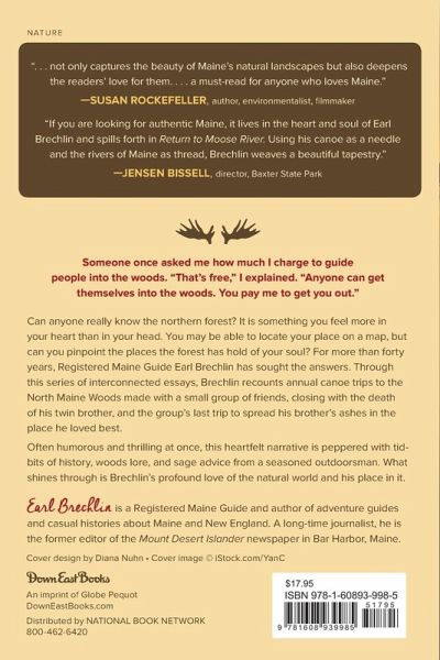 Someone once asked me how much I charge to guide people into the woods. ""That's free,"" I explained. ""Anyone can get themselves into the woods. You pay me to get you out."" Can anyone really know the northern forest? It is something you feel more in your heart than in your head. You may be able to locate your place on a map, but can you pinpoint the places the forest has hold of your soul? For more than forty years, Maine Guide Earl Brechlin has sought the answers. Through this series of interconnected essays, Brechlin recounts the annual canoe trips to the North Maine Woods he has made with a small group of friends, closing with the death of his twin brother and the group's last trip to spread his brother's ashes in the place he loved best. Often humorous and thrilling at once, the heartfelt narrative is peppered with tidbits of history, woods lore, and sage advice from a seasoned outdoorsman. What shines through is the author's profound love of the natural world and his place in it.