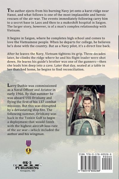 The author ejects from his burning Navy jet onto a karst ridge near Hanoi, and what follows is one of the most implausible and heroic rescues of the air-war. The events immediately following carry him to a secret base in Laos and then to a makeshift hospital in Saigon. The larger story, however, is of a man's complex relationship with Vietnam. It begins in Saigon, where he completes high school and comes to love the Vietnamese people. When he departs for college, he believes he's done with the country. But as a Navy pilot, it's a direct line back. After he leaves the Navy, Vietnam tightens its grip. Three decades later, he climbs the ridge where he and his flight leader were shot down. He learns his guide's brother was one of the gunners-then she leads him deep into a cave. Later that day, seated at a table in her thatched home, he begins to find reconciliation.