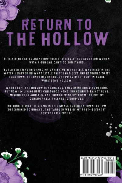 It is neither intelligent nor polite to tell a true Southern woman with a gun she can't do something. But after I was informed my career with the F.B.I. was dead in the water, I packed up what little pride i had left and returned to my hometown. The one I never thought I'd ever set foot in again. Whistler's Hollow. When I left the Hollow 14 years ago, I never intended to return. But now I'm living in my childhood home, surrounded by hot guys, mischievous animals, and enough mystery for me to put my considerable talents to good use. Nothing is what it seems in this small Southern town, but I'm determined to unravel the tangled web of my past--before it destroys my future.