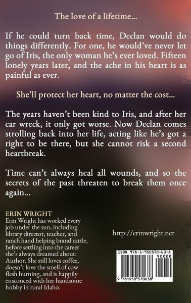Enjoy this steamy cowboy series by USA Today Bestselling small-town romance author Erin Wright... The love of a lifetime, lost but never forgotten... If he could turn back time, cowboy Declan Miller would do things differently. For one, he would've never let go of Iris Blue McLain, the only woman he's ever loved. Fifteen long and lonely years, and the ache in his heart is as painful as ever. When he sees her for the first time since they parted, she's every bit as pretty as she was years ago. No, even prettier. From across the crowded room, she steals his breath. Same silken, flame-colored…mehr
