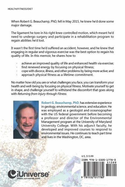 When Robert G. Beauchamp, Ph.D., fell in May 2015, he knew he'd done some major damage. The ligament he tore in his right knee controlled motion, which meant he'd need to undergo surgery and participate in a rehabilitation program to regain abilities he'd lost. It wasn't the first time he'd suffered an accident, however, and he knew that engaging in regular and vigorous exercise was the best option to regain his quality of life. In this memoir, he shares how to: • achieve an improved quality of life and enhanced health via exercise; • find renewed energy by focusing on physical fitness; • cope with divorce, illness, and other problems by being more active; and • approach physical fitness as a lifetime commitment. No matter how old you are or what challenges you face, you can transform your health and well-being by focusing on physical fitness. Motivate yourself to get in shape, and challenge yourself to withstand the discomfort that goes along with Returning from Injury through Fitness.