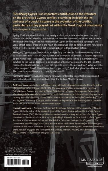 Spring 2008 witnessed the first positive signs of a thaw in relations between the two sides of the divided island of Cyprus since the dramatic failure of the Annan Plan in 2004. The historic meeting of the Greek and Turkish Cypriot leaders and the symbolic opening of the Ledra Street border crossing in the heart of Nicosia may herald a bright new future for this Mediterranean island. Yet Cyprus has been in this situation before. What makes this new initiative different and why should it succeed where so many others have failed? Reunifying Cyprus is the first book to analyse fully the reasons for the continuing failure to re-unite the two states of Cyprus after over forty years of division. It focuses especially on the Annan Plan - the popular name for the UN initiative to find a a??Comprehensive Solution to the Cyprus Problema?? in anticipation of Cyprusa?? accession to the EU - and the reasons for its ultimate failure. How did Cypriots receive the Annan Plan? What were the real or imagined flaws? Was this a missed opportunity? And what place does the Annan Plan have in future blueprints to reunify the island? Reunifying Cyprus will be invaluable for anyone interested in conflict resolution and international politics as well as students of the Eastern Mediterranean.