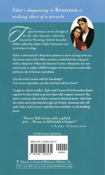 This rerelease of the first Palisades romance by Karen Ball tells the story of a young widow who learns to love again. Taylor Sorensen has a secret: there are wolves on her ranch. Taylor's new ranch hand, Connor Alexander, has a secret, too: he's a wildlife biologist who's been sent to find out if, after sixty years, wolves have returned to Wyoming. Caught in a fierce battle against angry ranchers and centuries of superstition, Taylor and Connor are drawn together by their desire to protect these wild, majestic animals. What they don't know is that there's someone else out there who hates the wolves -- someone who's as determined to get rid of them as Taylor and Connor are to protect them.