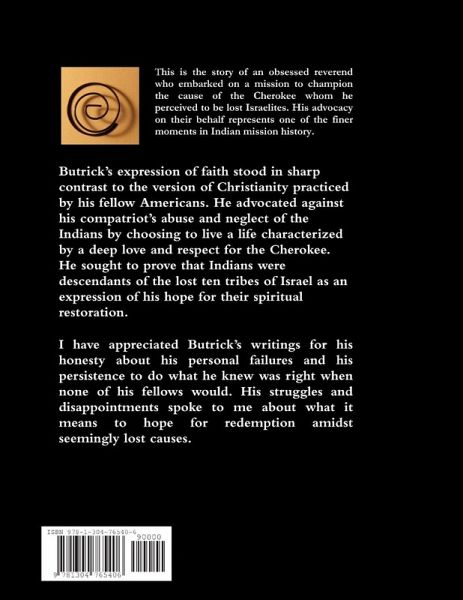 This is the story of an obsessed reverend who embarked on a mission to champion the cause of the Cherokee whom he perceived to be lost Israelites. His advocacy on their behalf represents one of the finer moments in Indian mission history. Rev. Butrick's expression of faith stood in sharp contrast to the version of Christianity practiced by his fellow Americans. He advocated against his compatriot's abuse and neglect of the Indians by choosing to live a life characterized by a deep love and respect for the Cherokee. He sought to prove that Indians were descendants of the lost ten tribes of Israel as an expression of his hope for their spiritual restoration. I have appreciated Butrick's writings for his honesty about his personal failures and his persistence to do what he knew was right when none of his fellows would. His struggles and disappointments spoke to me about what it means to hope for redemption amidst seemingly lost causes.
