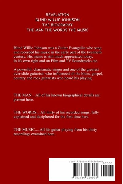 Blind Willie Johnson was a guitar evangelist who sang and recorded his music in the early part of the twentieth century.His music is still much appreciated today,in it's own right and on Film and TV Soundtracks etc. A powerful,charismatic singer and one of the greatest ever slide guitarists who influenced all the top blues,gospel,rock and country guitarists who heard his playing. The Man...All of his known biographical details are presented here. The Words...All of his recorded songs, fully explained and deciphered for the first time here. It's like the Blind Willie Johnson Rosetta Stone! The Music...All his guitar playing from his thirty recordings examined here.