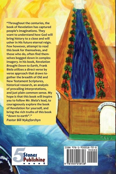 Throughout the centuries, the book of Revelation has captured people's imaginations. They want to understand how God will bring history to a close and will usher in His future eternal reign. Few however, attempt to read this book for themselves, and to those who do, often find themselves bogged down in complex imagery. In his book "Revelation Brought down to earth" Frank Biela utilizes a direct verse by verse approach that draws together the breadth of Old and New Testament Scriptures, historical research, an analysis of prevailing interpretations, and just plain common sense. My hope is that this book will inspire you to follow Mr. Biela's lead, to courageously explore the book of revelation for yourself, and bring the rich truths of this book "down to earth".