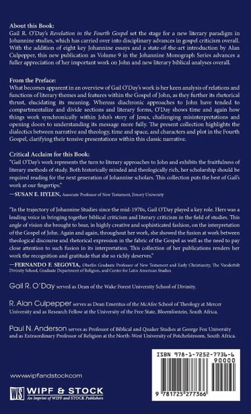 About this Book: Gail R. O'Day's Revelation in the Fourth Gospel set the stage for a new literary paradigm in Johannine studies, which has carried over into disciplinary advances in gospel criticism overall. With the addition of eight key Johannine essays and a state-of-the-art introduction by Alan Culpepper, this new publication as Volume 9 in the Johannine Monograph Series advances a fuller appreciation of her important work on John and new-literary biblical analyses overall. From the Preface: What becomes apparent in an overview of Gail O'Day's work is her keen analysis of relations and functions of literary themes and features within the Gospel of John, as they further its rhetorical thrust, elucidating its meaning. Whereas diachronic approaches to John have tended to compartmentalize and divide sections and literary forms, O'Day shows time and again how things worked synchronically within John's story of Jesus, challenging misinterpretations and opening doors to understanding more fully its message. The present collection highlights the dialectics between narrative and theology, time and space, and characters and plot in the Fourth Gospel, clarifying their tensive presentations within this classic narrative.