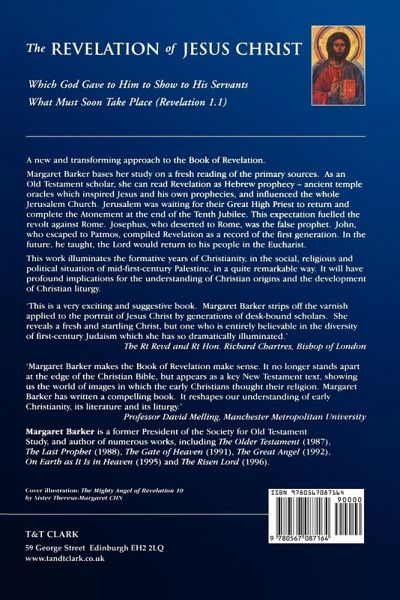 A new and transforming approach to the Book of Revelation. Margaret Barker bases her study on a fresh reading of the primary sources. As an Old Testament scholar, she can read Revelation as Hebrew prophecy - ancient temple oracles which inspired Jesus and his own prophecies, and influenced the whole Jerusalem Church. Jerusalem was waiting for their Great High Priest to return and complete the Atonement at the end of the Tenth Jubilee. This expectation fuelled the revolt against Rome. Josephus, who deserted to Rome, was the false prophet. John, who escaped to Patmos, compiled Revelation as a record of the first generation. In the future, he taught, the Lord would return to his people in the Eucharist.This work illuminates the formative years of Christianity, in the social, religious and political situation of mid-first-century Palestine, in a quite remarkable way. It will have profound implications for the understanding of Christian origins and the development of Christian liturgy.