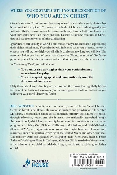 Where you go starts with your recognition of who you are in Christ. This book will inspire you to know who you are in Christ. It will motivate you to reach higher levels of success and satisfaction in life, family, and business. Our salvation in Christ ensures that every one of our needs or godly desires has been provided for by God. Yet many in the body of Christ are suffering and going without. Revelation is the key to developing the faith to receive the inheritance Jesus died to provide for us. One man said, "You are not suffering because there is a great devil, but because of your great ignorance." Ignorance of our identity in Christ is one reason many Christians are not possessing their divine inheritance. As someone once said, "Your vast inheritance [in Christ] comes only in proportion to your new identity." Our identity will influence what we become, how rich or poor we will be, how high we will climb, even how long we will live. The more revelation a person has of his new identity in Christ, the more of God's vast promises he will be able to receive and manifest in his life and circumstances. In Revelation of Royalty, you will discover: * You cannot rise any higher than your confession and revelation of royalty * You are a speaking spirit and have authority over the devil and all his works