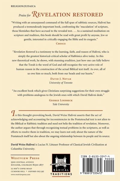 Modern critical scholars divide the Pentateuch into distinct components, identifying areas of unevenness in the scriptural tradition, which point to several interwoven documents rather than one immaculate whole. While the conclusions reached by such critical scholarship are still matters of dispute, the inconsistencies which it has identified stand clearly before us and pose a serious challenge to the believer in divine revelation. How can a text marred by contradiction be the legacy of Sinai? How can there be reverence for holy scriptures that show signs of human intervention? David Weiss Halivni explores these questions, not by disputing the evidence itself or by defending the absolute integrity of the Pentateuchal words at all costs, but rather by accepting the inconsistencies of the text as such and asking how this text might yet be a divine legacy.Inconsistencies and unevenness in the Pentateuchal scriptures are not the discovery of modern textual science alone. Halivni demonstrates that the earliest stewards of the Torah, including some of those represented in the Bible itself, were aware of discrepancies within the tradition. From the Book of Chronicles through the commentaries of the Rabbis, sensitive readers have perceived maculations, which mitigate against the notion of an unblemished, divine document, and have responded to these maculations in different ways.Revelation Restored asserts that acknowledging and accounting for human intervention in the Pentateuchal text is not alien to the Biblical or Rabbinic tradition and need not belie the tradition of revelation. Moreover, it argues that through recognizing textual problems in the scriptures, as well as efforts to resolve them in tradition, we may learn not only about the nature of the Pentateuch itself but also about the ongoing relationship between its people and its source.