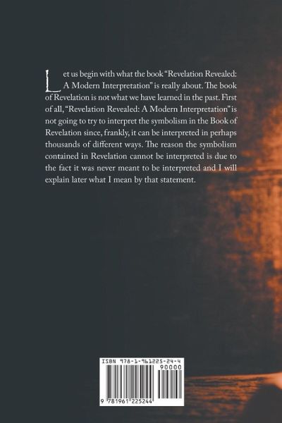 Let us begin with what the book "Revelation Revealed: A Modern Interpretation" is really about. The book of Revelation is not what we have learned in the past. First of all, "Revelation Revealed: A Modern Interpretation" is not going to try to interpret the symbolism in the Book of Revelation since, frankly, it can be interpreted in perhaps thousands of different ways. The reason the symbolism contained in Revelation cannot be interpreted is due to the fact it was never meant to be interpreted and I will explain later what I mean by that statement.