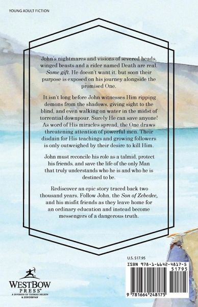 John's nightmares and visions of severed heads, winged beasts and a rider named Death are real. Some gift. He doesn't want it, but soon their purpose is exposed on his journey alongside the promised One. It isn't long before John witnesses Him ripping demons from the shadows, giving sight to the blind, and even walking on water in the midst of torrential downpour. Surely He can save anyone! As word of His miracles spread, the One draws threatening attention of powerful men. Their disdain for His teachings and growing followers is only outweighed by their desire to kill Him. John must reconcile his role as a talmid, protect his friends, and save the life of the only Man that truly understands who he is and who he is destined to be. Rediscover an epic story traced back two thousand years. Follow John, the Son of Zebedee, and his misfit friends as they leave home for an ordinary education and instead become messengers of a dangerous truth.