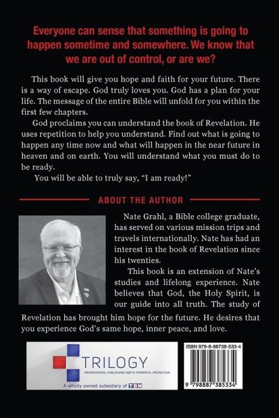 Everyone can sense that something is going to happen sometime and somewhere. We know that we are out of control, or are we? This book will give you hope and faith for your future. There is a way of escape. God truly loves you. God has a plan for your life. The message of the entire Bible will unfold for you within the first few chapters. God proclaims you can understand the book of Revelation. He uses repetition to help you understand. Find out what is going to happen any time now and what will happen in the near future in heaven and on earth. You will understand what you must do to be ready. You will be able to truly say, "I am ready!"