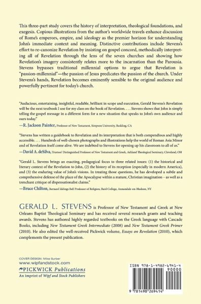 This three-part study covers the history of interpretation, theological foundations, and exegesis. Copious illustrations from the author's worldwide travels enhance discussion of Rome's emperors, empire, and ideology as the premier horizon for understanding John's immediate context and meaning. Distinctive contributions include Stevens's effort to re-canonize Revelation by insisting on gospel concord, methodically interpreting all of Revelation through the lens of the seven churches and showing how Revelation's imagery consistently relates more to the incarnation than the Parousia. Stevens bypasses traditional millennial options to argue that Revelation is "passion-millennial"--the passion of Jesus predicates the passion of the church. Under Stevens's hands, Revelation becomes eminently sensible to the original audience and powerfully pertinent for today's church.