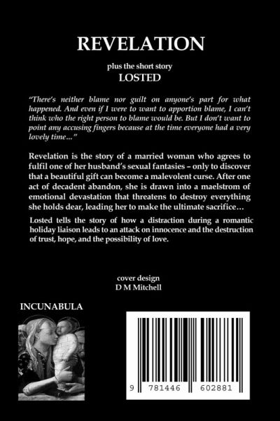 "There's neither blame nor guilt on anyone's part for what happened. And even if I were to want to apportion blame, I can't think who the right person to blame would be. But I don't want to point any accusing fingers because at the time everyone had a very lovely time..." Revelation is the story of a married woman who agrees to fulfil one of her husband's sexual fantasies - only to discover that a beautiful gift can become a malevolent curse. After one act of decadent abandon, she is drawn into a maelstrom of emotional devastation that threatens to destroy everything she holds dear, leading her to make the ultimate sacrifice...