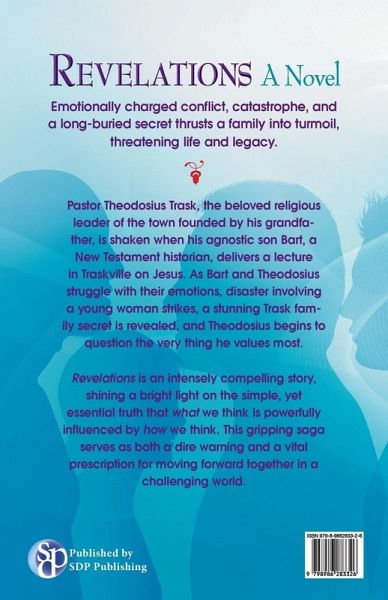 Emotionally charged conflict, catastrophe, and a long-buried secret thrusts a family into turmoil, threatening life and legacy. Pastor Theodosius Trask, the beloved religious leader of the town founded by his grandfather, is shaken when his agnostic son Bart, a New Testament historian, delivers a lecture in Traskville on Jesus. As Bart and Theodosius struggle with their emotions, disaster involving a young woman strikes, a stunning Trask family secret is revealed, and Theodosius begins to question the very thing he values most. Revelations is an intensely compelling story, shining a bright light on the simple, yet essential truth that what we think is powerfully influenced by how we think. This gripping saga serves as both a dire warning and a vital prescription for moving forward together in a challenging world.