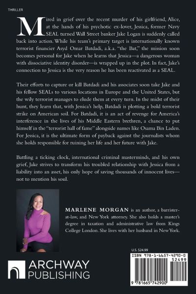 Mired in grief over the recent murder of his girlfriend, Alice, at the hands of his psychotic ex-lover, Jessica, former Navy SEAL turned Wall Street banker Jake Logan is suddenly called back into action. While his team's primary target is internationally known terrorist financier Asyd Omar Batdadi, a.k.a. "the Bat," the mission soon becomes personal for Jake when he learns that Jessica-a dangerous woman with dissociative identity disorder-is wrapped up in the plot. In fact, Jake's connection to Jessica is the very reason he has been reactivated as a SEAL. Their efforts to capture or kill Batdadi and his associates soon take Jake and his fellow SEALs to various locations in Europe and the United States, but the wily terrorist manages to elude them at every turn. In the midst of their hunt, they learn that, with Jessica's help, Batdadi is plotting a bold terrorist strike on American soil. For Batdadi, it is an act of revenge for America's interference in the lives of his Middle Eastern brethren, a chance to put himself in the "terrorist hall of fame" alongside names like Osama Bin Laden. For Jessica, it is the ultimate form of payback against the journalists whom she holds responsible for ruining her life and her future with Jake. Battling a ticking clock, international criminal masterminds, and his own grief, Jake strives to transform his troubled relationship with Jessica from a liability into an asset, his only hope of saving thousands of innocent lives-not to mention his soul.