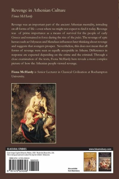 Revenge was an all important part of the ancient Athenian mentality, intruding on all forms of life - even where we might not expect to find it today. Revenge was of prime importance as a means of survival for the people of early Greece and remained in force during the rise of the 'poleis'. The revenge of epic heroes such as Odysseus and Menalaus influences later thinking about revenge and suggests that avengers prosper. Nevertheless, this does not mean that all forms of revenge were seen as equally acceptable in Athens. Differences in response are expected depending on the crime and the criminal. Through a close examination of the texts, Fiona McHardy here reveals a more complex picture of how the Athenian people viewed revenge.