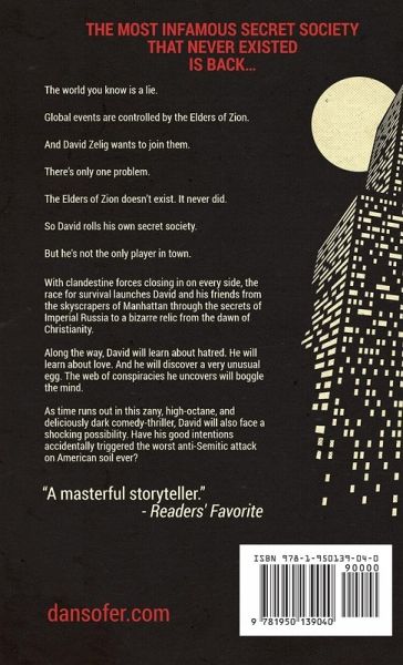 The most infamous secret society that never existed is back... "Highly recommended!" - The Jerusalem Post The world you know is a lie. Global events are controlled by the Elders of Zion. And David Zelig wants to join them. There's only one problem. The Elders of Zion doesn't exist. It never did. So David rolls his own secret society. But he's not the only vigilante group in town. With dark forces closing in on every side, the race for survival launches David and his friends from the skyscrapers of Manhattan through the secrets of Imperial Russia to an embarrassing relic from the dawn of Christianity. Along the way, David will learn about hatred. He will learn about love. And he will discover a very unusual egg. The web of conspiracy he uncovers will boggle the mind. As time runs out in this zany, high-octane, and deliciously dark comedy thriller, David will face a shocking possibility. Have his good intentions accidentally triggered the worst antisemitic attack on American soil ever? Get it now!