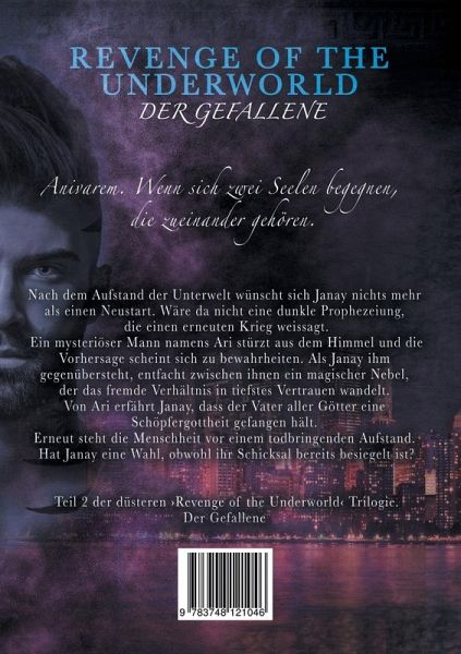 Anivarem. Wenn sich zwei Seelen begegnen, die zueinander gehören.Nach dem Aufstand der Unterwelt wünscht sich Janay nichts mehr als einen Neustart. Wäre da nicht eine dunkle Prophezeiung, die einen erneuten Krieg weissagt.Ein mysteriöser Mann namens Ari stürzt aus dem Himmel und die Vorhersage scheint sich zu bewahrheiten. Als Janay ihm gegenübersteht, entfacht zwischen ihnen ein magischer Nebel, der das fremde Verhältnis in tiefstes Vertrauen wandelt. Von Ari erfährt Janay, dass der Vater aller Götter eine Schöpfergottheit gefangen hält. Erneut steht die Menschheit vor einem todbringenden Aufstand. Hat Janay eine Wahl, obwohl ihr Schicksal bereits besiegelt ist?Teil 2 der düsteren Revenge of the Underworld Trilogie.