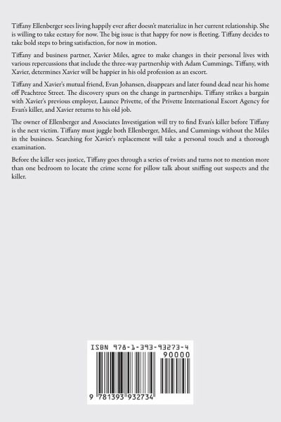 Tiffany Ellenberger sees living happily ever after doesn't materialize in her current relationship. She is willing to take ecstasy for now. The big issue is that happy for now is fleeting. Tiffany decides to take bold steps to bring satisfaction, for now in motion. Tiffany and business partner, Xavier Miles, agree to make changes in their personal lives with various repercussions that include the three-way partnership with Adam Cummings. Tiffany, with Xavier, determines Xavier will be happier in his old profession as an escort. Tiffany and Xavier's mutual friend, Evan Johansen, disappears and later found dead near his home off Peachtree Street. The discovery spurs on the change in partnerships. Tiffany strikes a bargain with Xavier's previous employer, Launce Privette, of the Privette International Escort Agency for Evan's killer, and Xavier returns to his old job. The owner of Ellenberger and Associates Investigation will try to find Evan's killer before Tiffany is the next victim. Tiffany must juggle both Ellenberger, Miles, and Cummings without the Miles in the business. Searching for Xavier's replacement will take a personal touch and a thorough examination. Before the killer sees justice, Tiffany goes through a series of twists and turns not to mention more than one bedroom to locate the crime scene for pillow talk about sniffing out suspects and the killer.