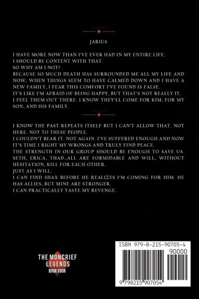 I have more now than I've ever had in my entire life. I should be content with that. So why am I not? Because so much death has surrounded me all my life and now, when things seem to have calmed down and I have a new family, I fear this comfort I've found is false. It's like I'm afraid of being happy, but that's not really it. I feel them out there. I know they'll come for Kim, for my son and his family. I know the past repeats itself, but I can't allow that. Not here. Not to these people. I couldn't bear it. Not again. I've suffered enough and now it's time I right my wrongs and truly find peace. The strength in our group should be enough to save us. Seth, Erica, Thad…all are formidable and will, without hesitation, kill for each other. Just as I will. I can find Shax before he realizes I'm coming for him. He has allies, but mine are stronger. I can practically taste my revenge.