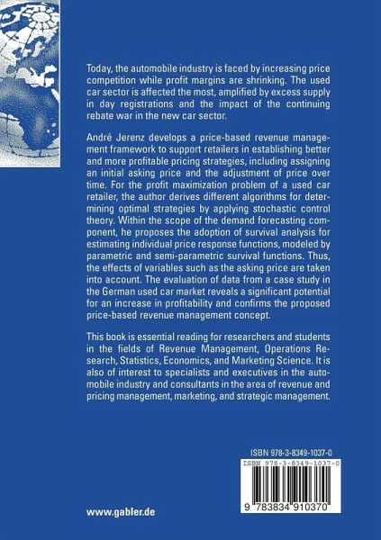 Revenue management has been successfully applied to service-oriented industries for a long time. In the more recent past, besides these classical application areas, it has been introduced to other production and logistics processes as well. For the automobile industry so far, only a few revenue managementmodels have been developed but practically none for its used car sector. Being a sector with suitable prerequisites and a low pro?t margin, this is a promising application area for price-based revenue management. As used cars are "individual" and "durable" goods - unlike seat or room bookings -, a different approach is necessary with "dynamic pricing" as the main control strategy. A somewhat similar problem can only be found in the real estate sector. Thus, a conceptual framework of an appropriate revenue management model based on dynamic pricing must be developed. Using current and historical m- ket data, the price-responsefunctionhas to be estimated which then can serve as the basis for determining the optimal dynamic pricing strategy. For two central components of this framework, optimization and estimation, - novative approaches are proposed. Based on results from Control Theory, different possible models are suggested and extensively evaluated. Finally, a stochastic discrete-time model is identi?ed as themost appropriate.Withthis, it is possible todevelopiterativealgorithmsto det- mine the optimal pricing strategy even for problems without closed-form solution.