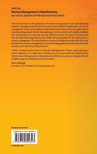 This book focuses on the application of revenue management in the manufacturing industry. Though previous books have extensively studied the application of revenue management in the service industry, little attention has been paid to its application in manufacturing, despite the fact that applying it in this context can be highly profitable and instrumental to corporate success. With this work, the author demonstrates that the manufacturing industry also fulfills the prerequisites for the application of revenue management. The book includes a summary of empirical studies that effectively illustrate how revenue management is currently being applied across Europe and North America, and what the profit potential is.