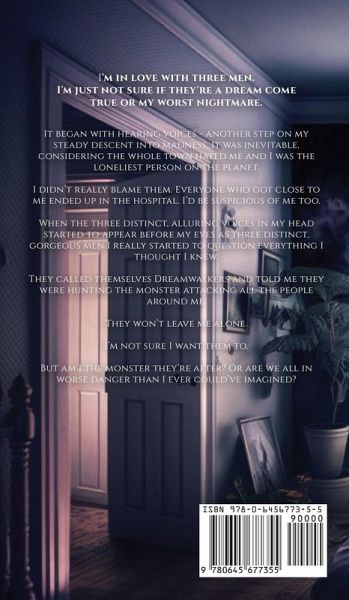 I'm in love with three men. I'm just not sure if they're a dream come true or my worst nightmare. It began with hearing voices - another step on my steady descent into madness. It was inevitable, considering the whole town hated me and I was the loneliest person on the planet. I didn't really blame them. Everyone who got close to me ended up in the hospital. I'd be suspicious of me too. When the three distinct, alluring voices in my head started to appear before my eyes as three distinct, gorgeous men I really started to question everything I thought I knew. They called themselves Dreamwalkers and told me they were hunting the monster attacking all the people around me. They won't leave me alone. I'm not sure I want them to. But am I the monster they're after? Or are we all in worse danger than I ever could've imagined?