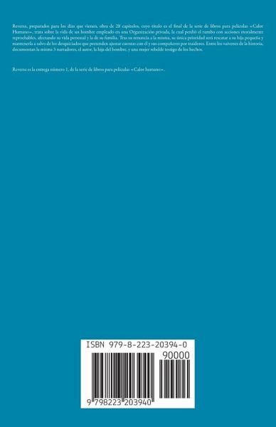 Reversa, preparados para los días que vienen, obra de 28 capítulos, cuyo título es el final de la serie de libros para películas «Calor Humano», trata sobre la vida de un hombre empleado en una Organización privada, la cual perdió el rumbo con acciones moralmente reprochables, afectando su vida personal y la de su familia. Tras su renuncia a la misma, su única prioridad será rescatar a su hija pequeña y mantenerla a salvo de los desquiciados que pretenden ajustar cuentas con él y sus compañeros por traidores. Entre los vaivenes de la historia, documentan la misma 3 narradores, el autor, la hija del hombre, y una mujer rebelde testigo de los hechos. Reversa es la entrega número 1, de la serie de libros para películas «Calor humano».
